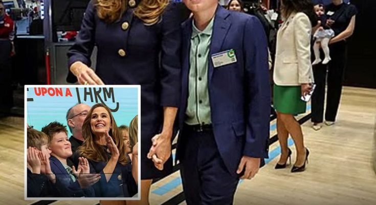Garner’s son came along for the thrill and chills as his mom rang the opening bell to celebrate the IPO – or Initial Public Offering – of her organic baby food company, Once Upon a Farm.