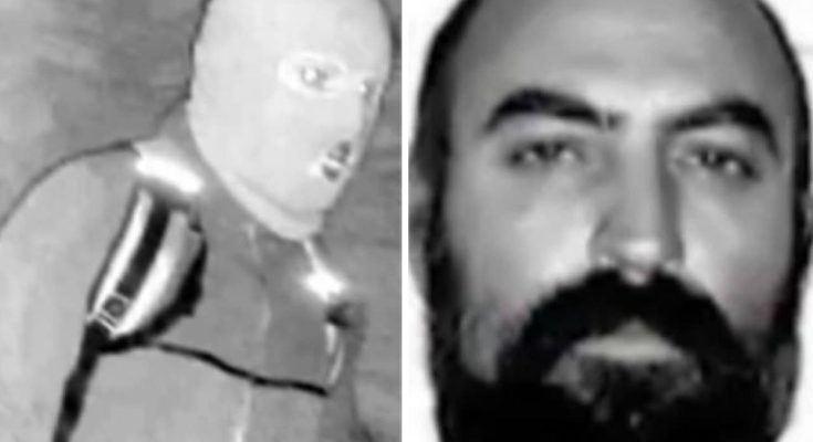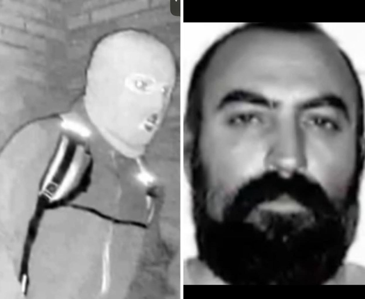 The suspect shows a distinct patch of hair under the bottom lip.