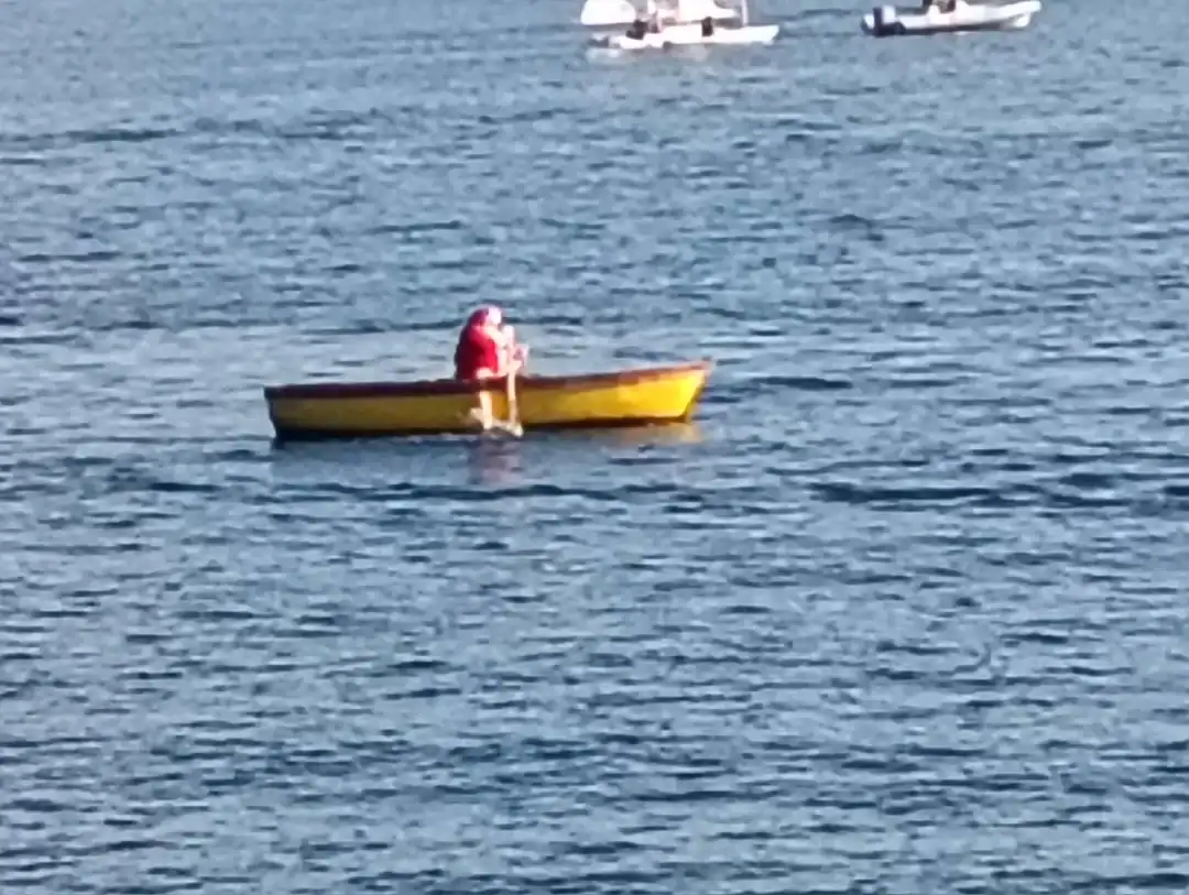 14. “Santa Claus spotted on a yellow boat in Naples, Italy”