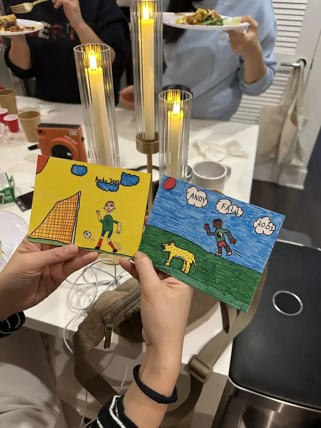 12. “Found my friend’s 2nd-grade vs 3rd-grade self-portraits at their housewarming”