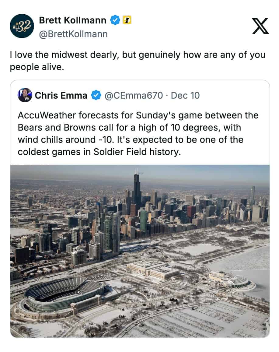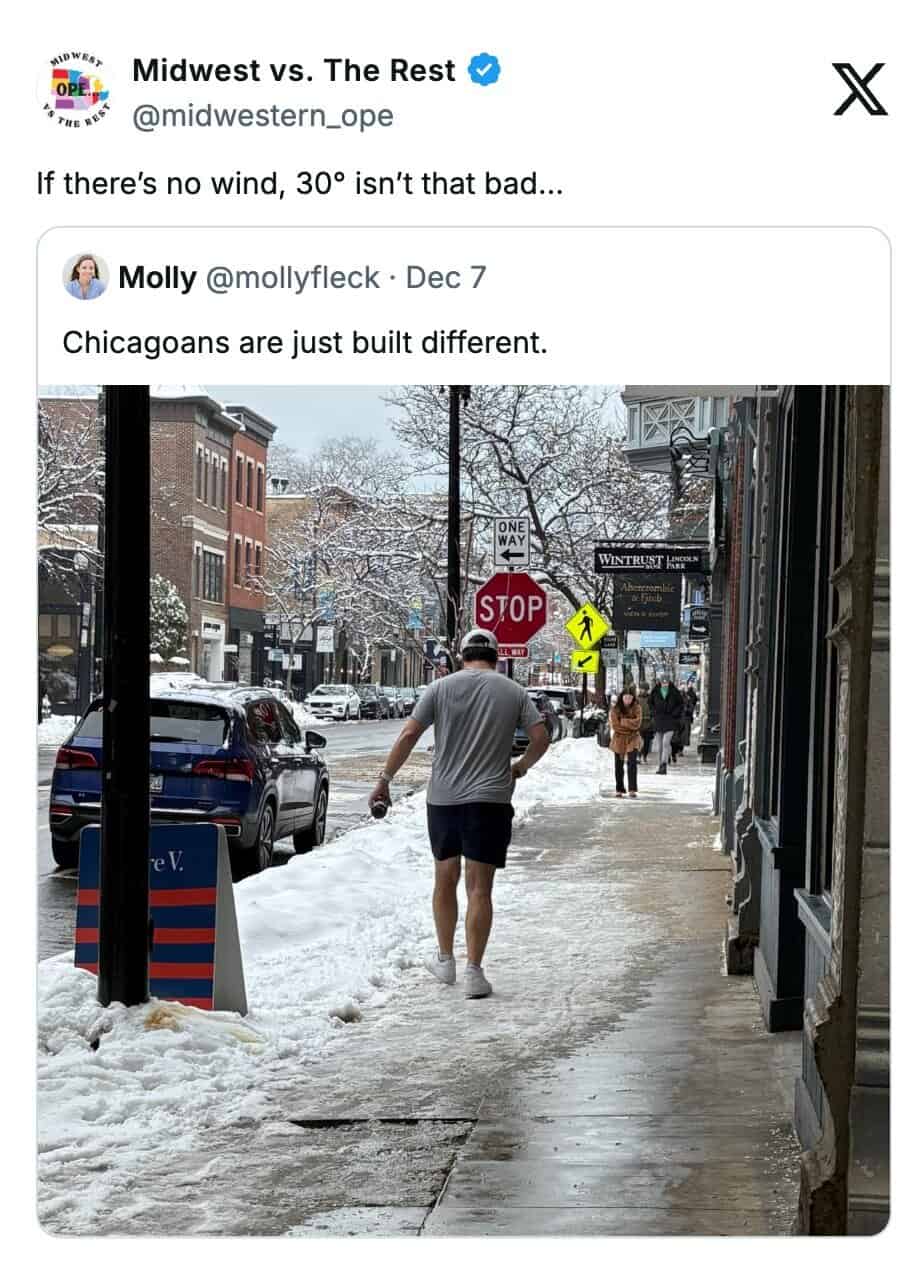 Midwest memes usually hit the everyday stuff. Brushing snow off your car with whatever sleeve is closest. Acting like winter isn’t a big deal while clearly being annoyed by it. Just the typical Midwest mindset in mid-December.