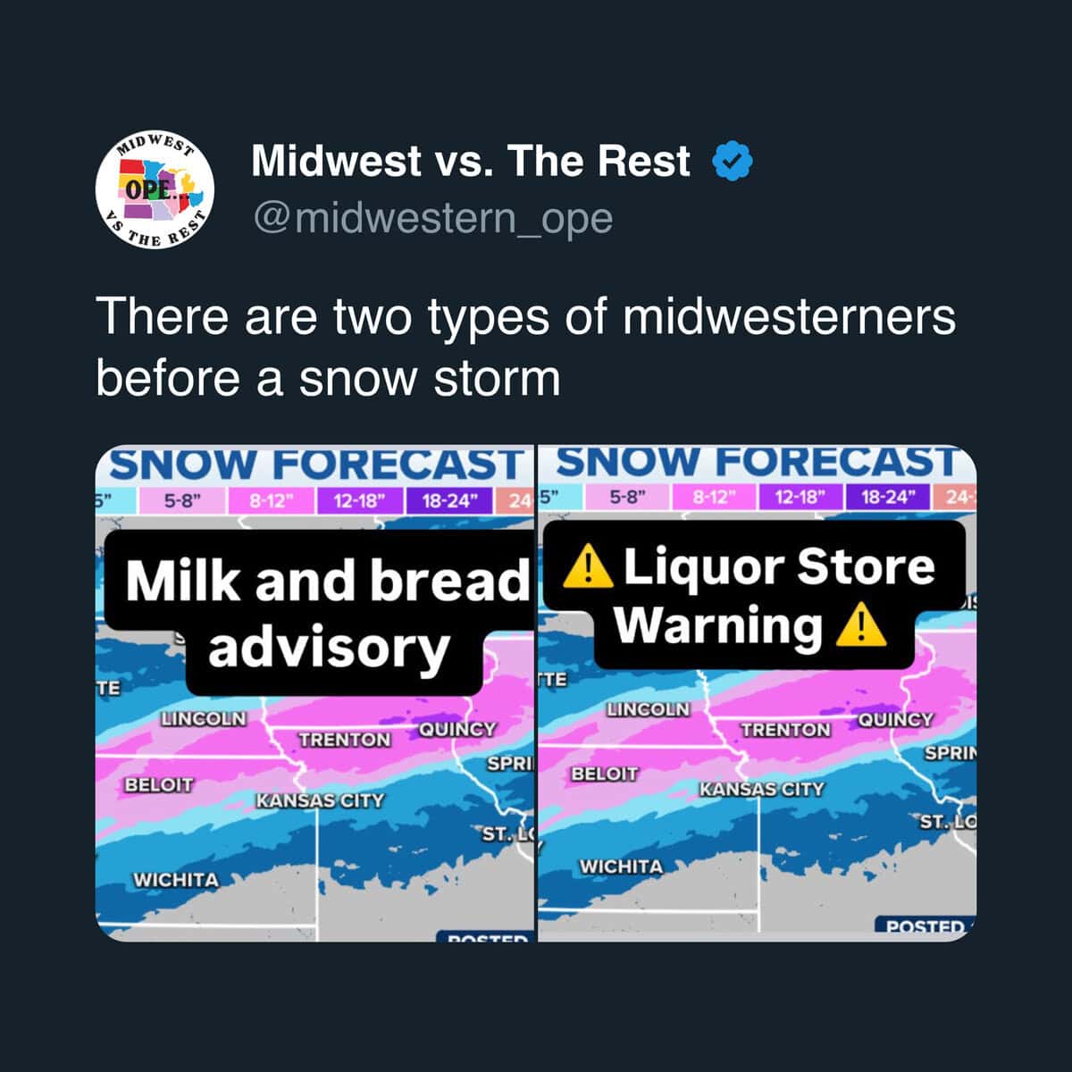 As a Midwestern guy, these memes feel pretty spot on. A lot of them this week revolve around cold weather and snow, which makes sense because that’s just kind of the default setting here. It’s less about complaining and more about accepting it and moving on.