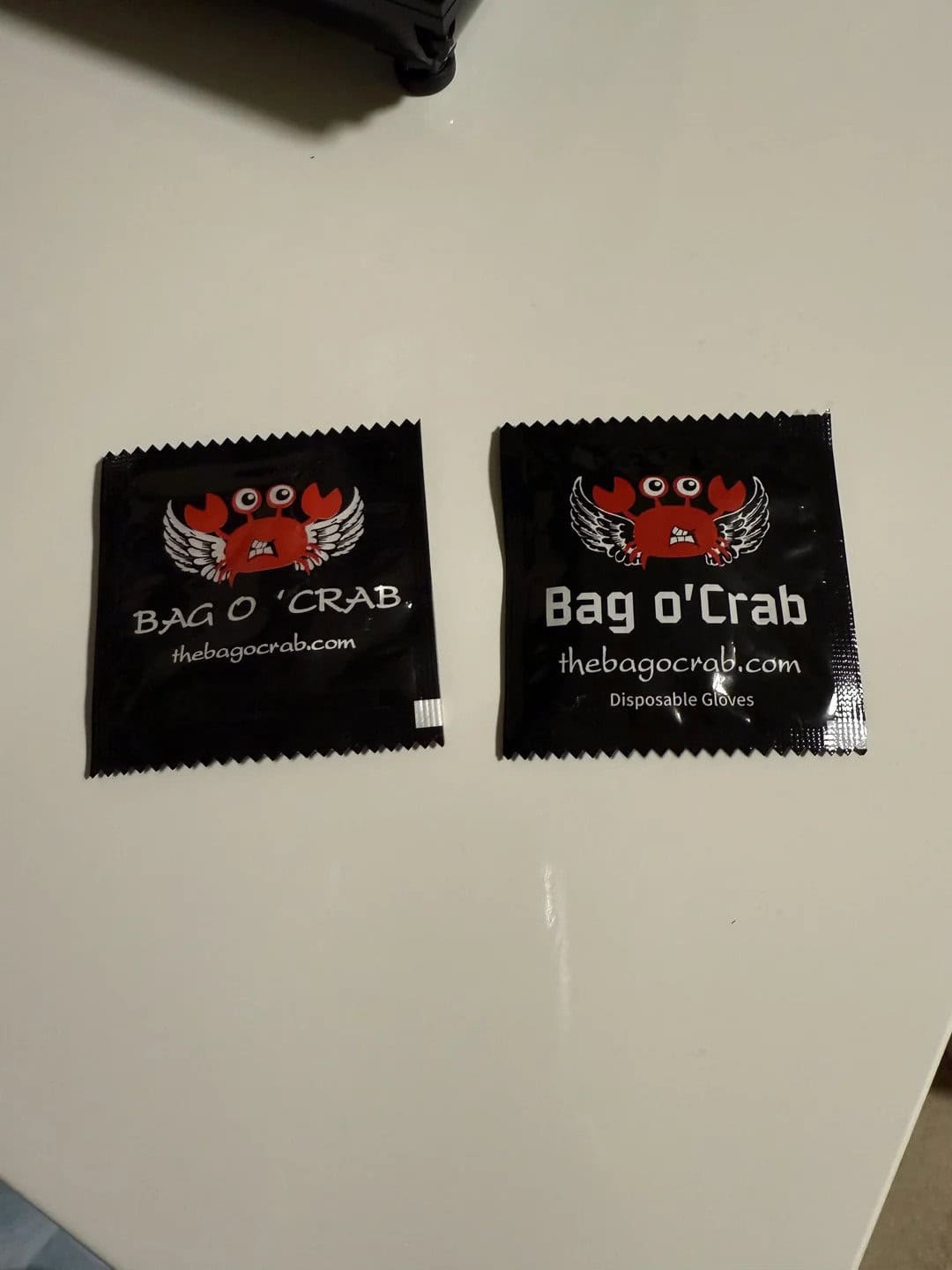 16. “This seafood boil restaurant eventually added a label for their disposable gloves”